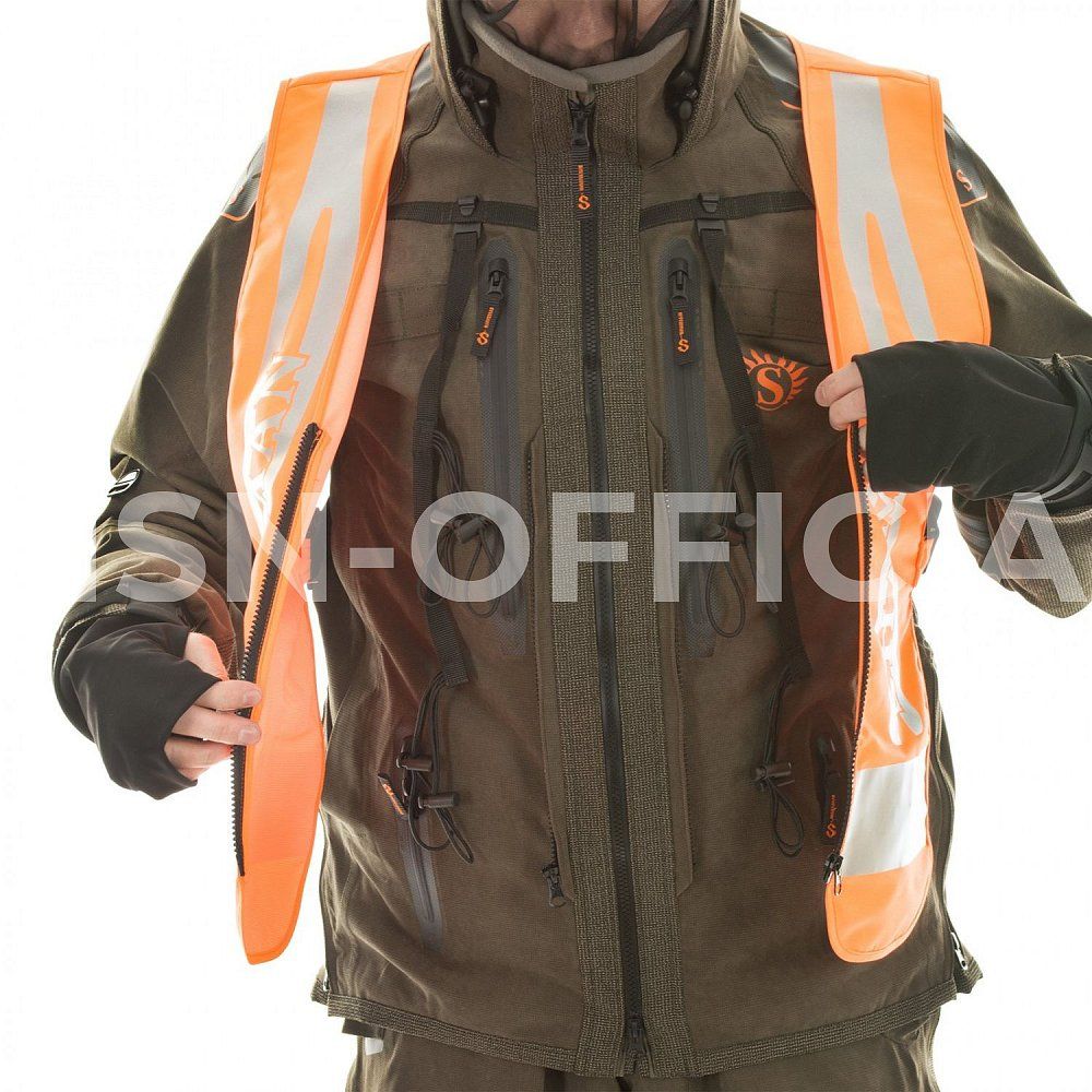 - высокий ветрозащитный воротник усиленный неопреном с регулировкой;